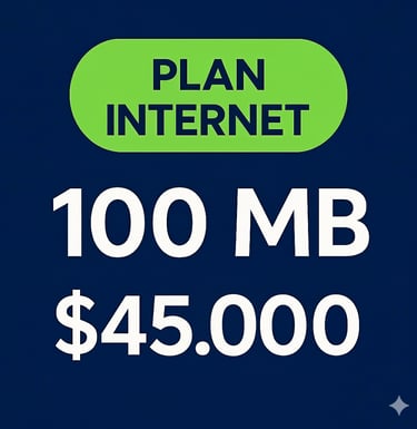 Con nuestro PLAN INTERNET de 100 MB por solo $45.000, disfruta de una conexión rápida, estable y al mejor precio.